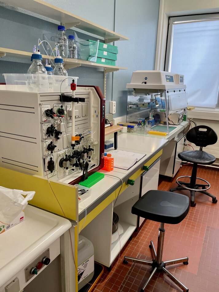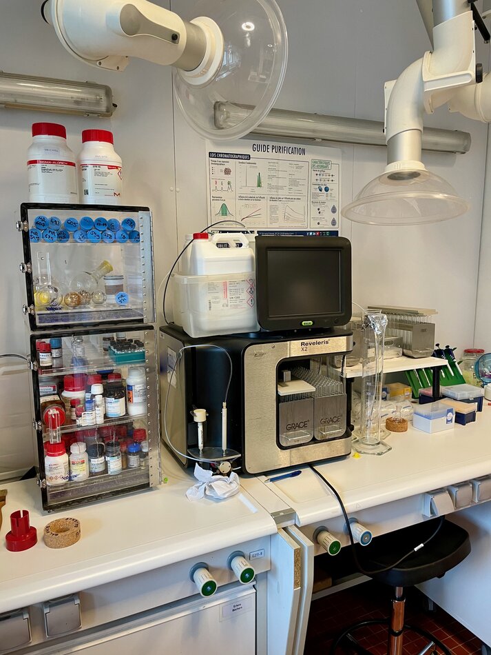 Chimie de synthèse, conjugaison de protéines, analyse microfluidique, culture cellulaire et expression de protéines recombinantes.