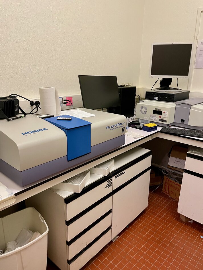 - Spectroscopie : spectrophotométrie UV/visible/proche infrarouge, spectrofluorimétrie, spectrométrie avec excitation laser de haute puissance. Microscopie de molécules uniques, électrophorèse sur gel d’agarose et révélation par fluorescence, lecteur de plaque multi-puits (absorbance/fluorescence).
